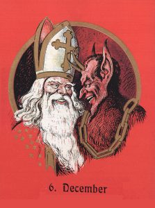 In plaats van door Zwarte Pieten wordt Mikulás vergezeld door een duivel, Krampusz.
